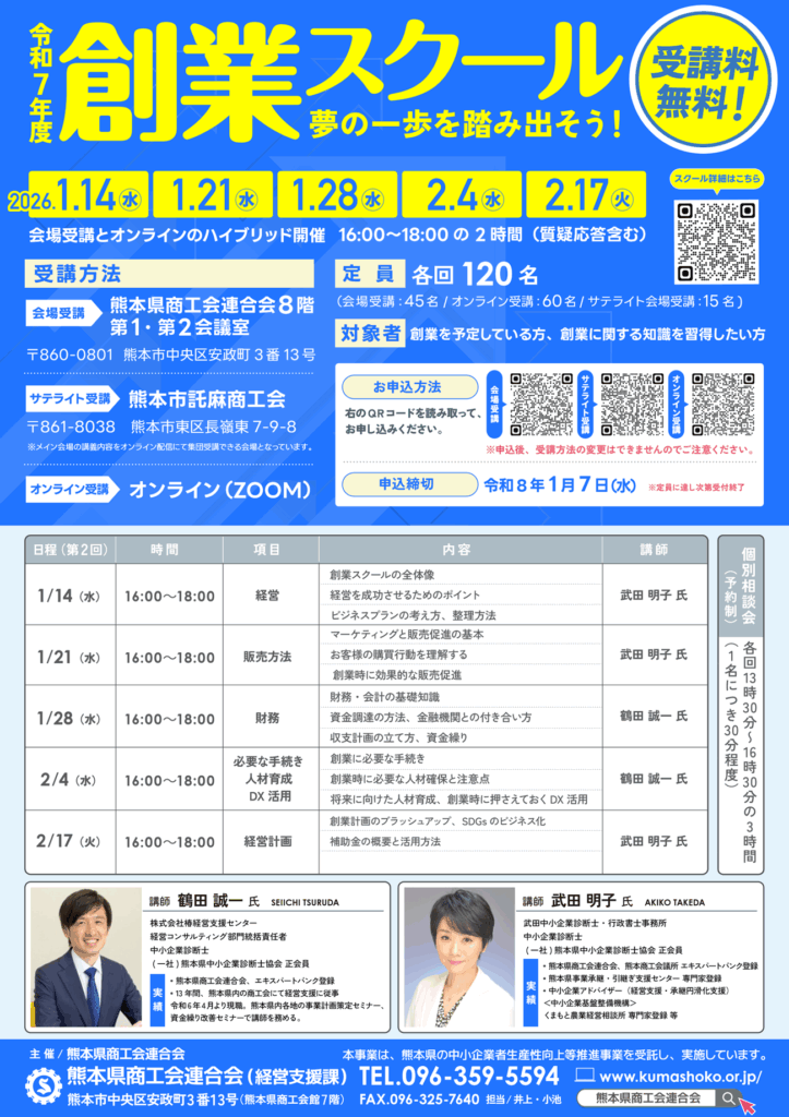 講座内容: 経営、販売方法、財務、人材育成とDX活用、経営計画