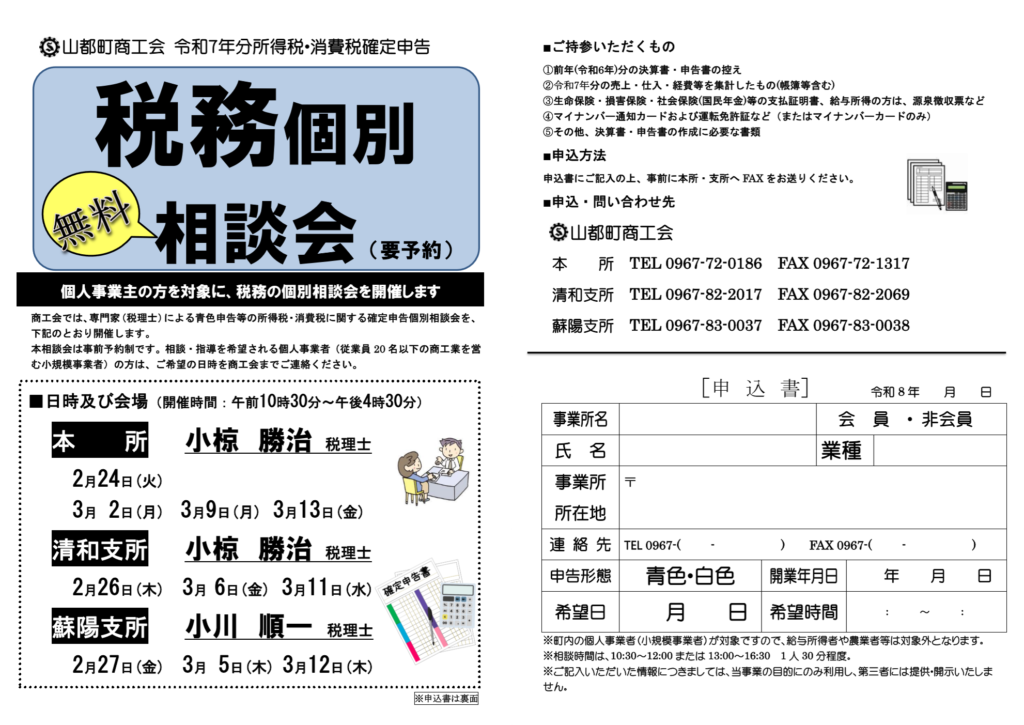 前もって確認のある方も、お気軽に商工会窓口までご連絡ください。